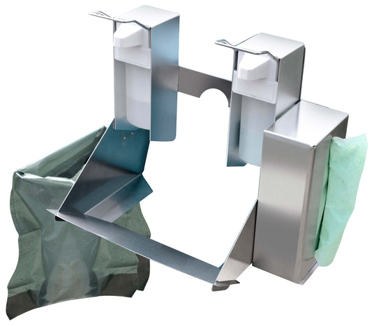 Das luftdichte und hygienisch entnehmbare Einweg-Entsorgungssystem (o.g. Dekontaminationsbeutel mit Deckel und Bindemittel) hält das WC