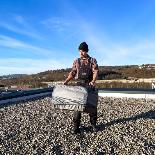 Unser Material ist wasser- und feuerfest und bietet Arbeitern Entlastung und Schutz vor den Elementen.