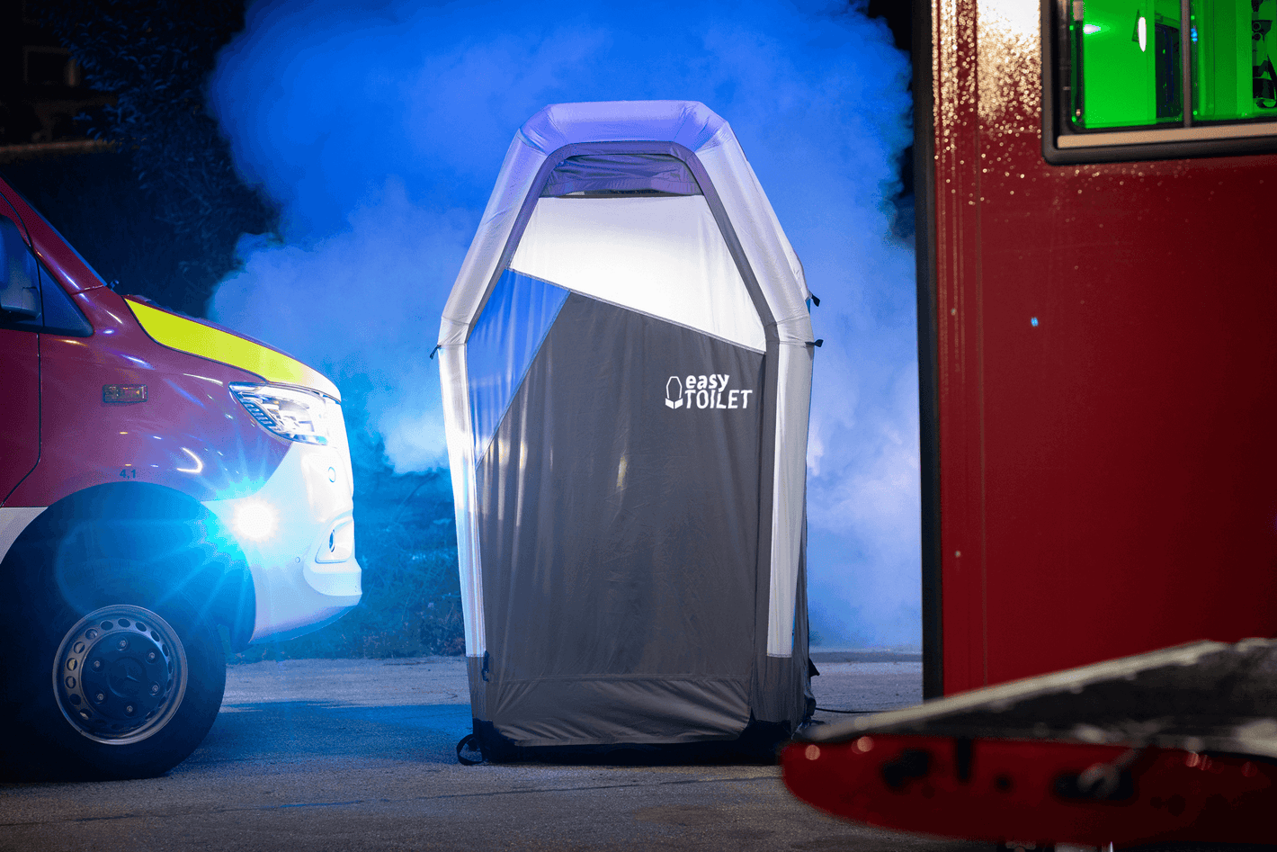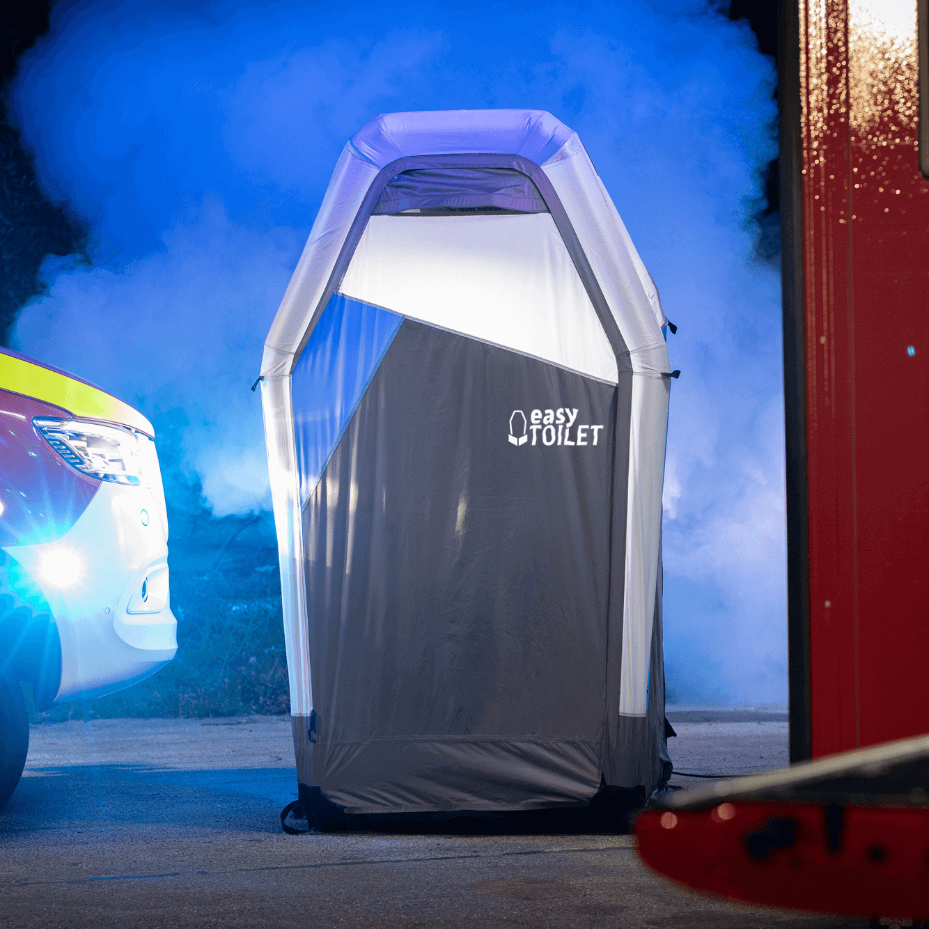 Mit hygienischer Abfallentsorgung, sichtgeschütztem Material und einem verschließbaren Eingang schafft easyToilet humane Bedingungen am Einsatzort, insbesondere für weibliche Zivilisten und Rettungskräfte.
