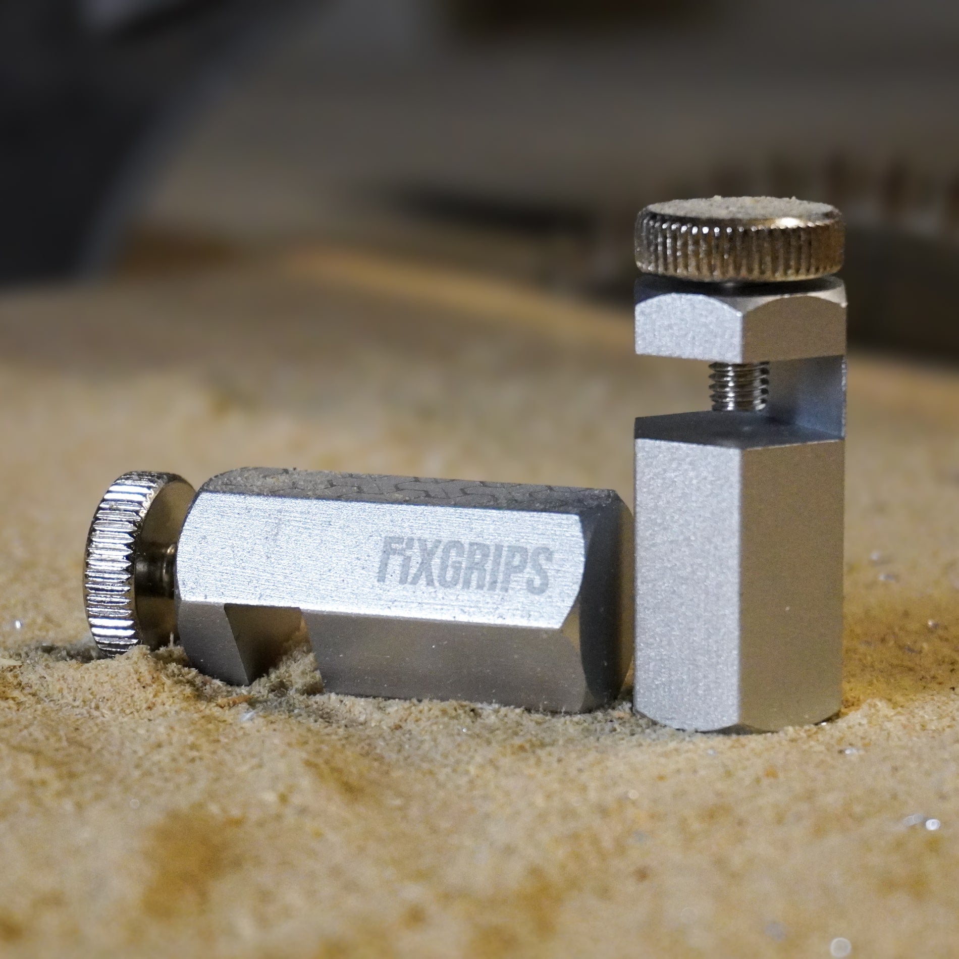 FixGrips und Halteblech: sandgestrahltes Aluminium (mit Lasergravur)