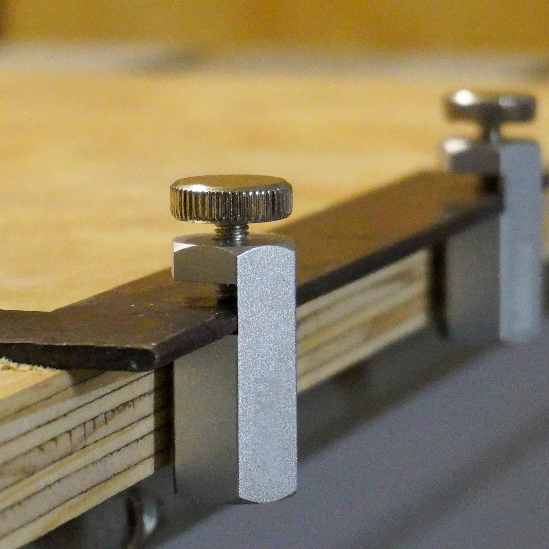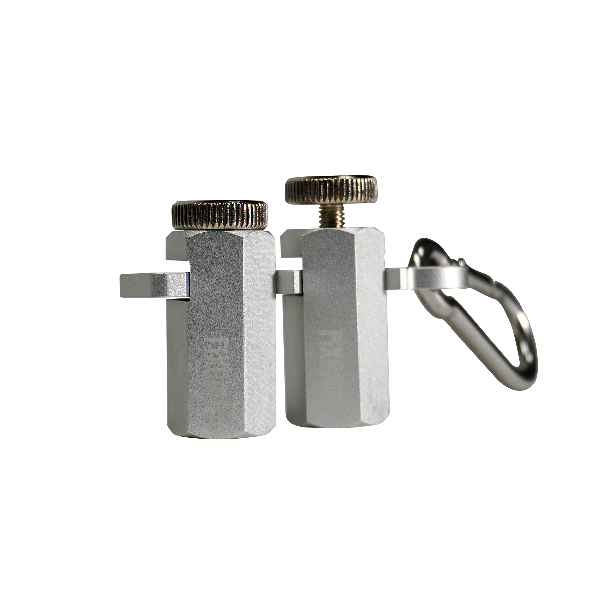 Die FixGrips bieten unkomplizierte Arretierung für Anschlags- und Zimmererwinkel sowie Handkreissägen direkt am Werkstück. Mit einem Aussparungsmaß von 7,5mm und massivem, sandgestrahlten Profil für sicheren Halt. Einfach am Gürtel einhängbar dank mitgeliefertem Halteblech und Karabiner – immer einsatzbereit.