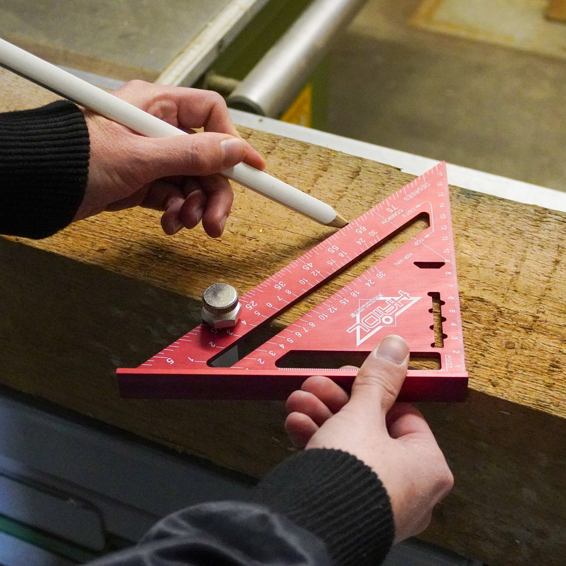 Der 7-Zoll-Anschlagswinkel aus robustem Aluminiumlegierung bietet eine mattschwarze Oberfläche für außergewöhnliche Härte und Langlebigkeit. Perfekt geeignet für präzise Winkelmessungen, Linienreißer, Sägeführungen und Rahmenwinkel.